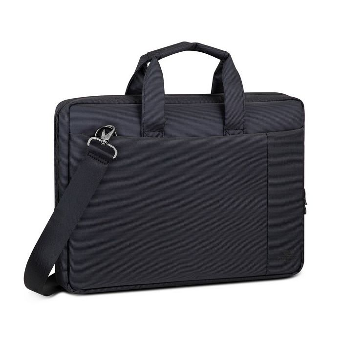 8231 Black15.6'' Notebook Bag.Product Features:• Padded Laptop compartment provides extra protection• Fits Macbook Pro 15• External pocket for your devices or a Tablet• Front pocket with an organizer panel for documents, accessories and a smartphone• Dual zipper pulls for for quick and easy access• Comfortable padded handles and a removable, adjustable strap with an anti-slip shoulder pad