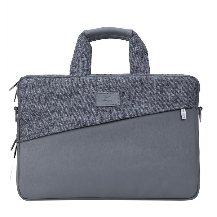 7930 GreyBag for MacBook Pro 16 and Ultrabook up to 15.6Product Features:• Manufactured using high-quality faux leather and tweed herringbone fabric made of durable polyester• Provides extra protection from accidental hits, scratches, dust and moisture• Padded Laptop compartment fits MacBook Pro 16 and Ultrabook 15.6• Capacious main compartment will easily store all the necessary accessories and a Tablet up to 10.1“• Front compartment contains a zippered pocket for accessories with an organizer panel for business cards, pens and a cell phone• Additional external zippered pocket for accessories• Dual zipper pulls for quick and easy access• Shiny and unique metallic hardware• Handles can be folded into outer compartments from both sides making the bag even more slim• Removable adjustable strap