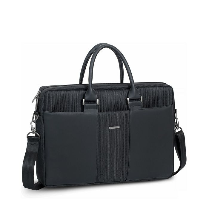8135 Black15.6'' Laptop BagProduct Features: • 15.6'' Laptop Bag• Made of fine herringbone-patterned fabric with rich faux leather inserts• Thickened sides provide extra protection from accidental damage• Laptop compartment, section for documents and a pocket for a Tablet up to 10.1”• Two front zippered pockets for accessories, cables and chargers• Shiny and unique metallic hardware• Dual zipper pulls for quick and easy access• Comfortable padded handles and a removable, adjustable strap can be easily removed or adjusted to a preferred length