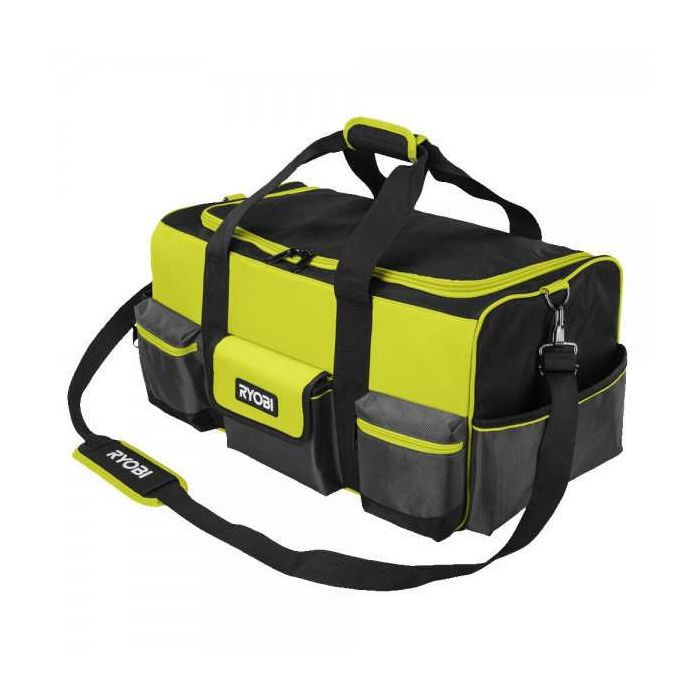 Ryobi RSSLTB1 Velika torba Čvrsto ojačano dno, podstavljena naramenica i ojačane ručke, otvor s dvostrukim patentnim zatvaračem. 3 x prednja džepa, jedan s poklopcem 1 x otvoreni džep straga 1 x bočni džep sa svake strane 8 x unutarnjih omči za ručne alate 2 x unutarnja otvorena džepa 1 x unutarnji džep s poklopcem