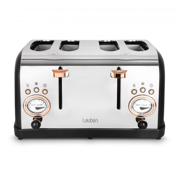 Lauben toster za 4 kriške 1500BC za savršen obiteljski doručak Započnite dan ukusnim obiteljskim doručkom. Nema više borbe za prvi hrskavi tost. S Lauben 4 Slice Toasterom 1500BC pripremit ćete doručak za čak četiri osobe odjednom, toliko komada kruha možete staviti u toster istovremeno, a ostala peciva možete tostirati na dvije uključene grijaće rešetke . Možete birati između šest razina intenziteta tostiranja, tu je i funkcija odmrzavanja kruha te funkcija podgrijavanja za slučajeve kada se kruh već ohladio. Ako osjetite da će kruh zagorjeti, jednostavno upotrijebite funkciju trenutnog ručnog prekida tostiranja. Uređaj je jednostavan za održavanje, samo izvadite posudu za mrvice i istresite je. Vrhunski dizajn od nehrđajućeg čelika ne smeta čak ni kabelu koji se lako skriva u dnu baze. Zajedno s grijačem vode Lauben Kettle 17BC, toster čini savršen stilski set za doručak.