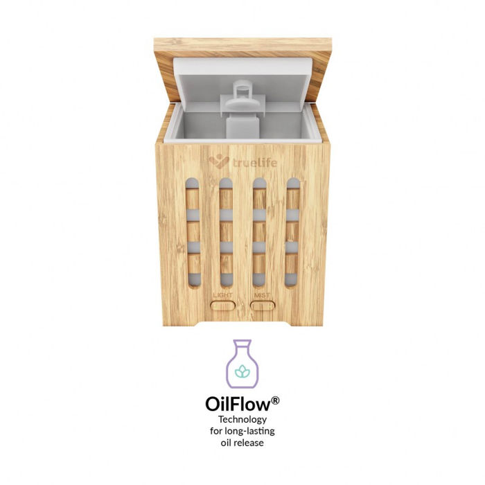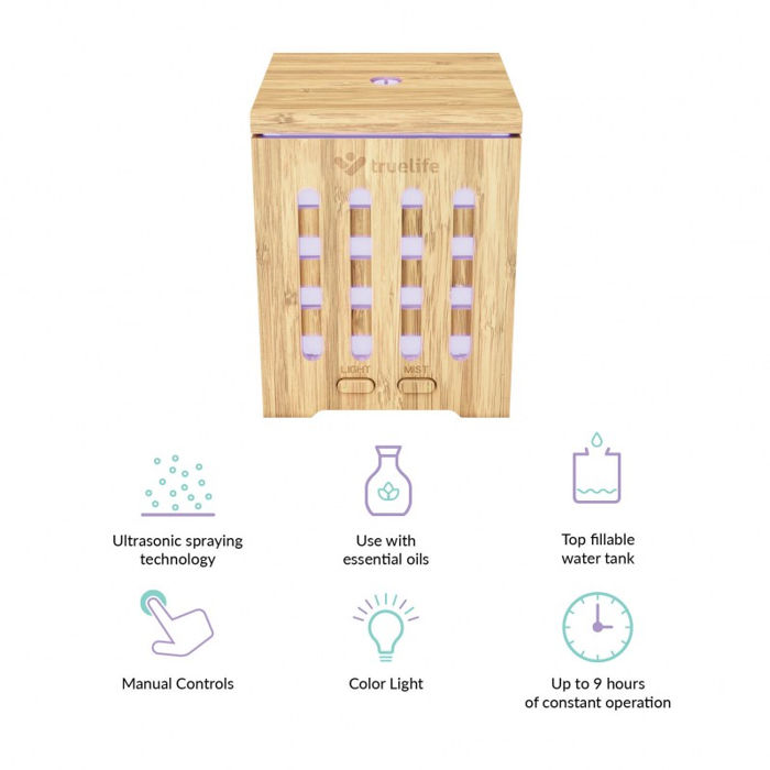 TrueLife AIR Difuzor D7 Bambus Zašto koristiti aroma difuzor? Difuzori su odličan suputnik kod meditacije, problema s disanjem, alergija i spavanja, gdje presuh zrak iritira grlo i ne možemo pravilno disati. Mogu se koristiti sa ili bez eteričnih ulja, ali je dokazano da naše tijelo pozitivno reagira na različite mirise. Odabirom pravog mirisa možemo odabrati željenu atmosferu, popraviti raspoloženje ili se opustiti.
