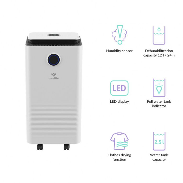 TrueLife AIR odvlaživač zraka DH5 Touch TrueLife AIR odvlaživač zraka DH5 Touch 12 l u 24 sata Odvlaživač zraka Truelife AIR Dehumidifier DH5 Touch ispusti do 12 l vode u 24 sata.
