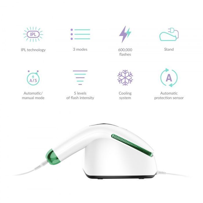 3 u 1 - pomlađivanje kose, akni i kože TrueIPL® tehnologija Epilator emitira nježne pulseve svjetlosti ispod površine kože gdje ometa melanin u folikulu dlake, pomažući prekinuti ciklus rasta dlake.
