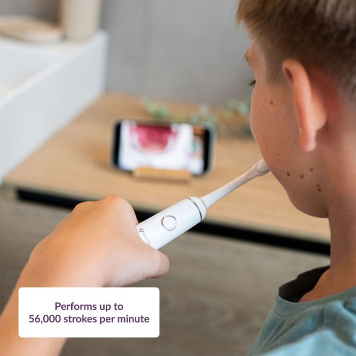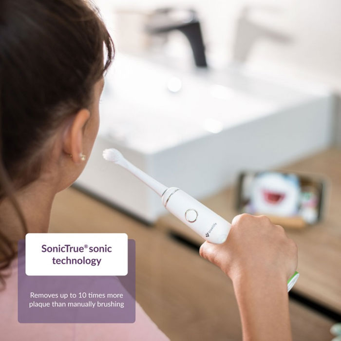 Nježna i učinkovita SonicTrue® zvučna tehnologija SonicTrue® sonična tehnologija radi na temelju nježnih vibracija pri čemu vlakna zvučne četkice osciliraju velikom brzinom i uklanjaju do 99% plaka. Studije pokazuju da je zvučna četkica nježnija prema dječjim zubima od ručnih ili rotirajućih četkica. Osim toga, vrlo je ugodan za korištenje.