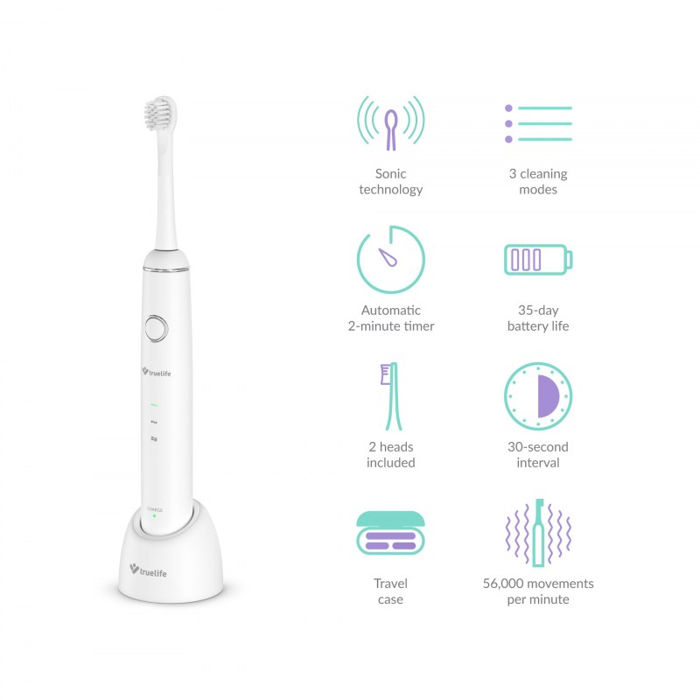 Četka je prilagođena mlađim i starijim osobama SonicTrue® zvučna tehnologija Četkica radi na bazi oscilacija i vibracija s frekvencijom od 56 000 pokreta u minuti te uklanja sav zubni plak.