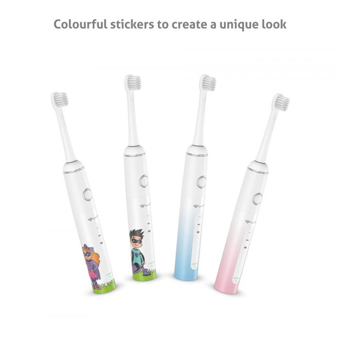 Bežično punjenje Četiri naljepnice u boji Sastavni dio pakiranja su i četiri različite naljepnice kojima kist mogu ukrasiti i dječaci i djevojčice.