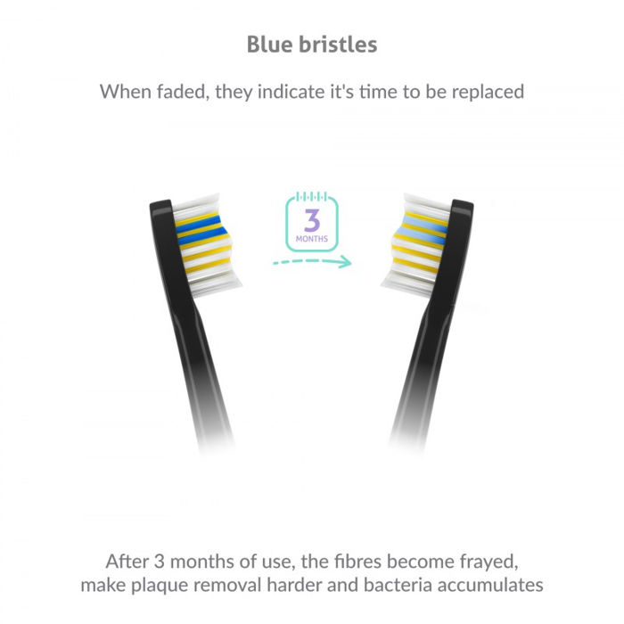 TrueLife SonicBrush Compact-series glave Sensitive black 2 pak Glava traje oko tri mjeseca korištenja, ali tada počinje hrđati, gubi učinkovitost i na njoj se skupljaju bakterije. Srećom, glave su opremljene plavim dlačicama koje izblijede nakon tri mjeseca i odmah znate da glavu treba zamijeniti.
