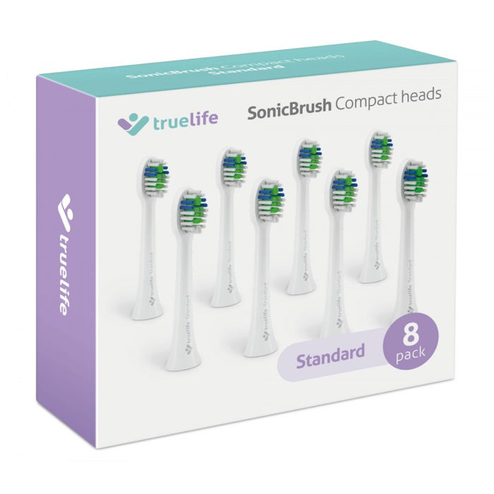 TrueLife SonicBrush Compact-series glava Standard white 8 pak Zamjenske glave su posebno dizajnirane za precizno čišćenje zuba.