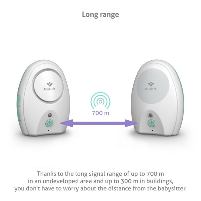 Domet do 700 metara Signal NannyTone VM Pocket baby monitora doseže do 700 metara, tako da se bez straha možete kretati po vrtu s roditeljskom jedinicom. Ako je signal u prekidu, dadilja će vas upozoriti signaliziranjem, ali samo na roditeljskoj jedinici, kako ne bi smetala djetetu.