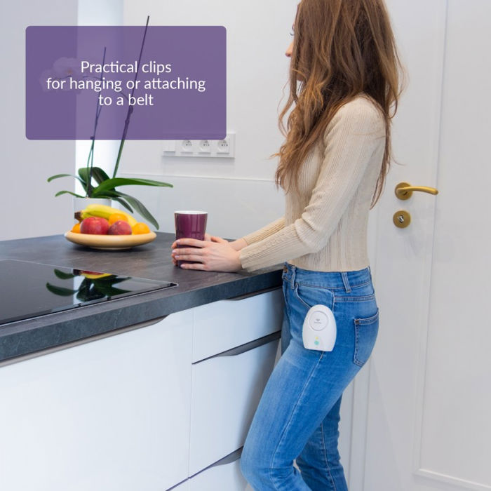 Praktične funkcije Idealno za putovanja Obje jedinice imaju punjive baterije koje se mogu jednostavno puniti pomoću USB-C kabela ili powerbank-a. Ne trebate izvor napajanja za rad babysitterice i možete je ponijeti sa sobom bilo gdje. Obje jedinice također imaju praktične kopče za vješanje ili pričvršćivanje na pojas, tako da je dadilja uvijek udobno uz vas.
