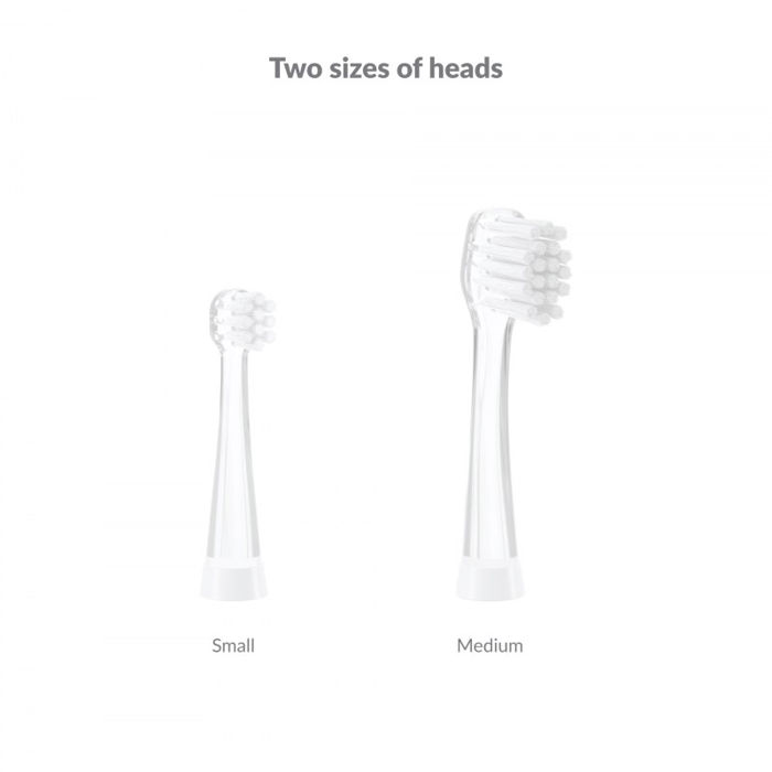 LED rasvjeta Meke čekinje Čekinje zvučne četke su dovoljno mekane. Odabiru se prema strogim kriterijima kako bi odgovarali topografiji dječjih zuba i zaštitili djetetovo desni od abrazije ili krvarenja.