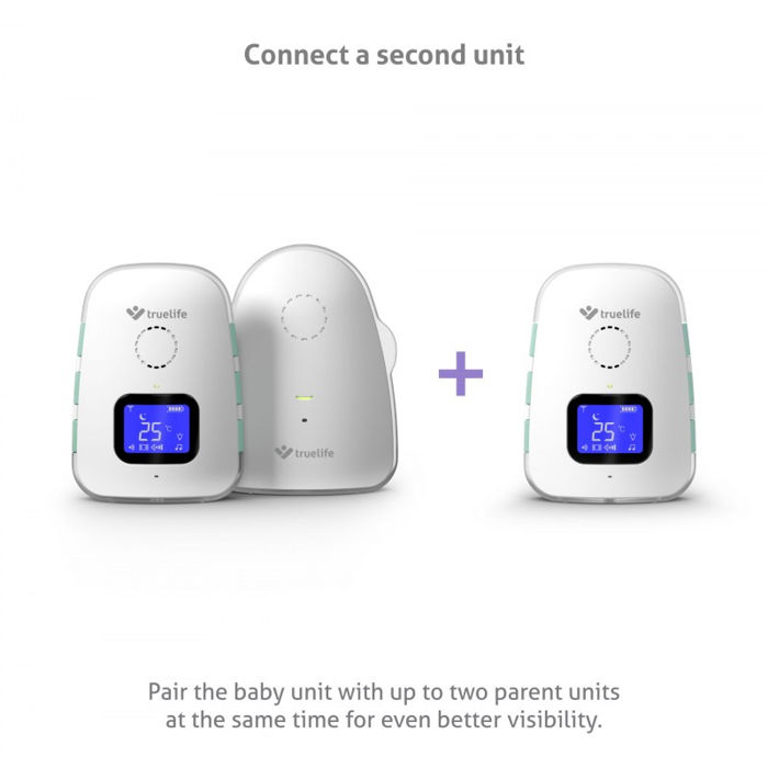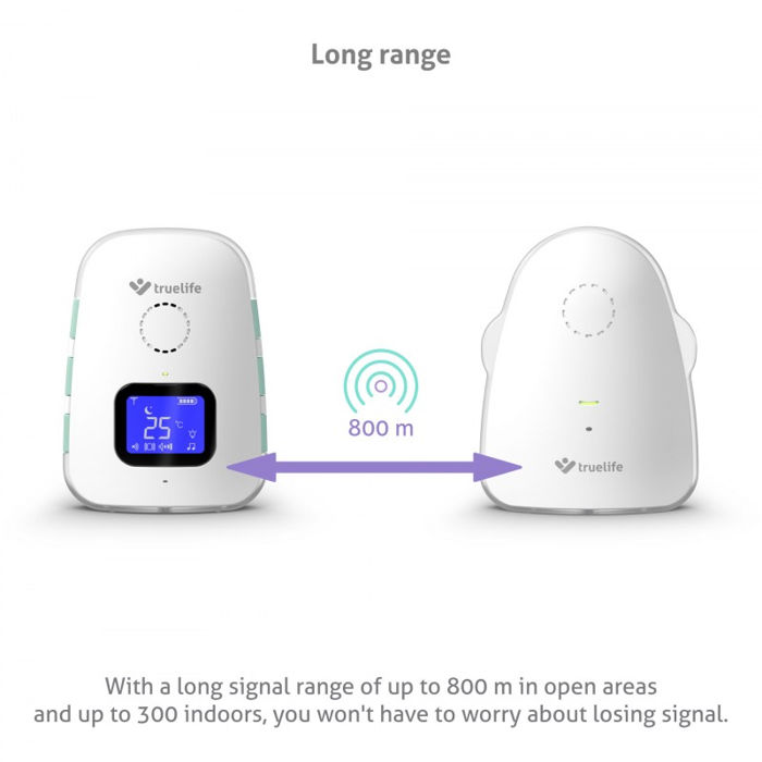 TrueLife NannyTone VM3 - digitalni audio baby monitor s punjivim jedinicama Držite svoje mališane pod kontrolom čak i ako trenutno niste s njima. Digitalni audio monitor za bebe TrueLife NannyTone VM3 uhvatit će svaki zvuk i prenijeti ga vašoj roditeljskoj jedinici na udaljenosti do 800 m na otvorenom i do 300 m unutar zgrade. Prije nego što dođete do svog djeteta, možete ga utješiti preko babysitterice uz pomoć mogućnosti dvosmjerne komunikacije. Možete birati između osam uključenih uspavanki. Također će vas zadovoljiti svojim tihim načinom rada i vibracijom. Ugrađene baterije u obje jedinice doista su vrlo izdržljive, ali ako se počnu prazniti, elektronička dadilja će vas na to upozoriti na vrijeme. Isto tako, odmah ćete znati ako se izgubi signal ili ako detektor detektira nisku ili visoku temperaturu u dječjoj sobi.
