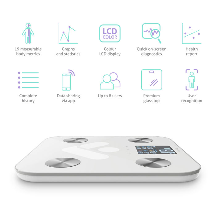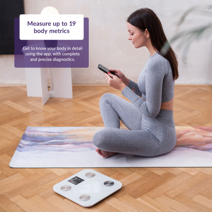 TrueLife FitShape S6 BT White čini više i pruža vam priliku da detaljno upoznate svoje tijelo. Osim točnih podataka o trenutnoj težini, također pruža niz drugih važnih informacija zahvaljujući analizi bioelektrične impedancije. Jasan LCD zaslon u boji sa 7 indeksa tijela jasno prikazuje potrebne vrijednosti. Ova brza dijagnoza otkriva puno o tijelu, a još detaljniji opis svih njih, odnosno do 19 mjerljivih tjelesnih indeksa, možete dobiti putem mobilne aplikacije. Jednostavno povežete vagu sa svojim telefonom putem Bluetootha i odmah imate dostupne izvješće o cijelom tijelu i statistiku. Vaga je čak toliko inteligentna da automatski prepoznaje korisnika. Njegovo vrhunsko pokrovno staklo može izdržati težinu od do 180 kg.