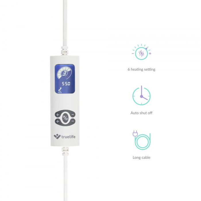 Električna grijaća deka TrueLife HeatBlanket 1813 Jednostavan za korištenje za golemu udobnost Jednostavna upotreba, neizmjerna udobnost Pokrivač je vrlo jednostavan za korištenje. Jednostavno odaberite jednu od šest razina grijanja i namjestite mjerač vremena na točno onoliko vremena koliko vam je potrebno za zagrijavanje. Ako se dekica zaprlja, lako ju možete oprati u perilici rublja.