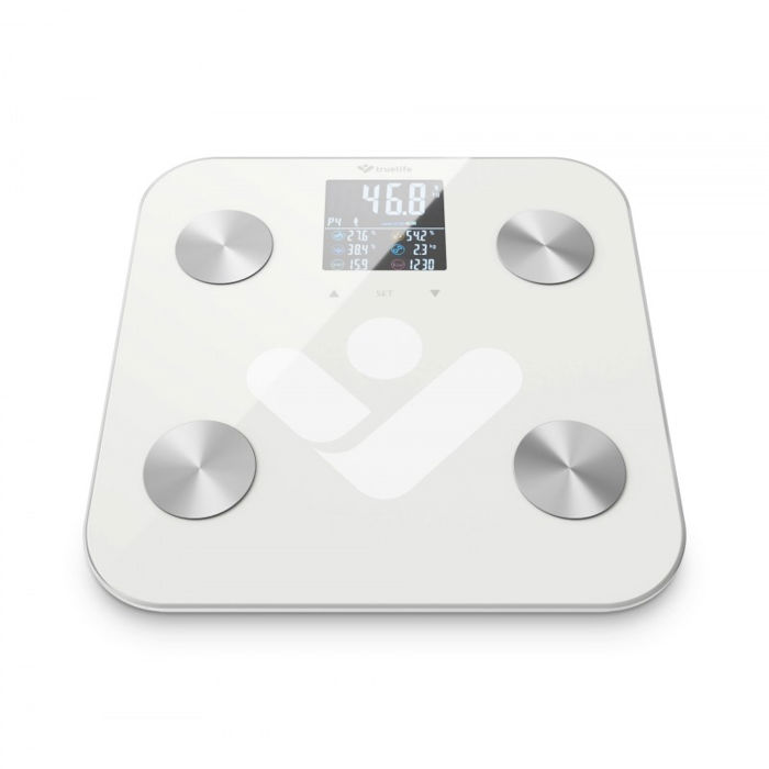 TrueLife FitScale W6 BT - Pratite svaki detalj vašeg tijela Upoznajte svoje tijelo do posljednjeg detalja Inteligentna vaga TrueLife FitScale W6 BT otkrit će mnogo više od same težine. Jeste li upoznati s kraticama poput BMI, BMR ili BFR? To su indeksi koji pokazuju udio masnog tkiva odnosno količinu energije koja je tijelu potrebna za funkcioniranje. Vaga ima čak 19 mjernih tjelesnih indeksa. Među izmjerenim vrijednostima saznat ćete i vrijednost proteina, mišićnu frekvenciju, koštanu masu, vodu u tijelu i još mnogo toga.