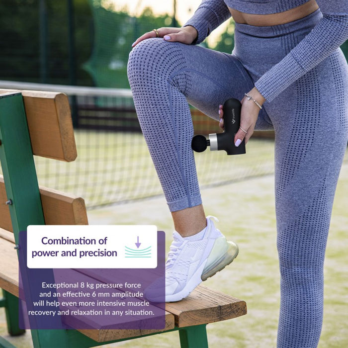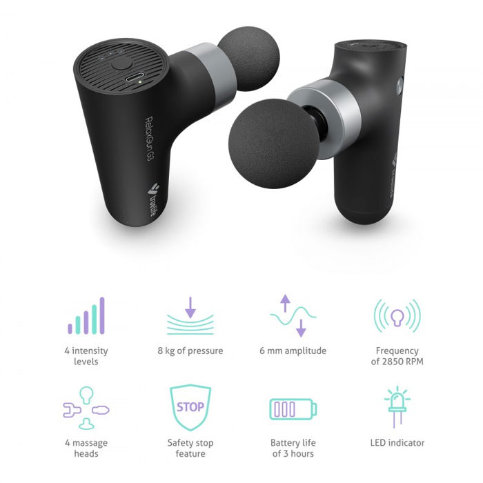 TrueLife RelaxGun G3 - Snažne performanse u kompaktnom pakiranju TrueLife RelaxGun G3 pištolj za masažu savršeno je rješenje, bez obzira jeste li aktivni sportaš kojem je potrebno rasterećenje mišića ili osoba koja sjedi i želi se osloboditi napetosti i boli. Ovaj kompaktni i lagani uređaj pruža moćnu masažu koja može poboljšati protok krvi, osloboditi napetosti i pomoći u oporavku mišića. Uz 4 izmjenjive glave i 4 intenziteta masaže, možete prilagoditi svoje iskustvo masaže i ciljati određena područja boli ili bolova. Unatoč svom kompaktnom i laganom dizajnu, RelaxGun G3 pruža impresivan pritisak od 8 kg i radi na frekvenciji do 2850 okretaja u minuti. Funkcija Safety Stop osigurava sigurnu upotrebu jer automatski usporava ili isključuje uređaj kada se primijeni preveliki pritisak. Nakon 15 minuta korištenja, masažni pištolj se automatski isključuje kako bi se spriječilo prekomjerno korištenje. Punjiva litijeva baterija omogućuje do 3 sata rada, tako da masažni pištolj TrueLife RelaxGun G3 možete koristiti bilo gdje i bilo kada.