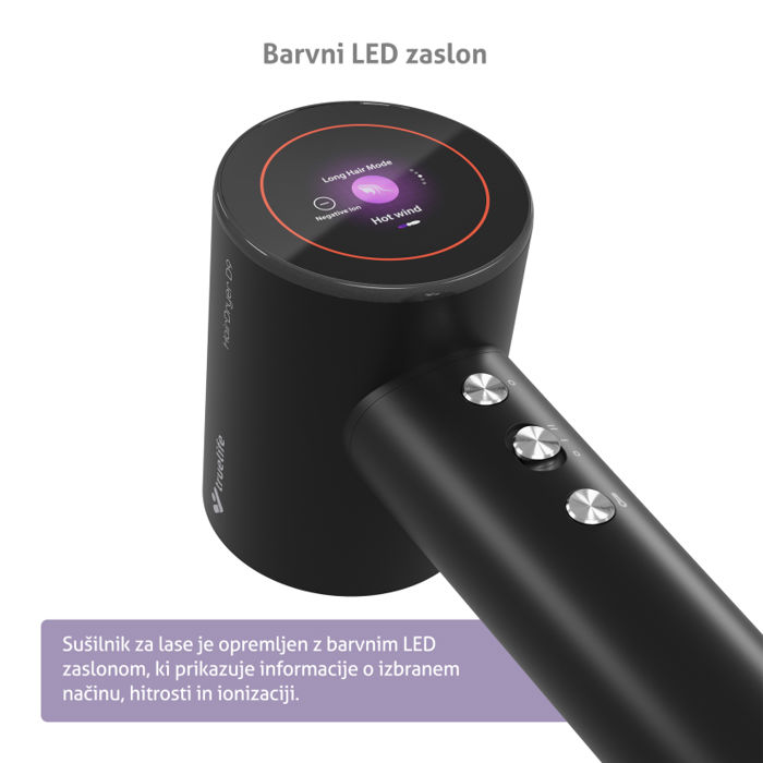 Kosa je kruna ljepote, stoga joj pružite najbolju njegu kao u salonu. Vrhunsko sušilo za kosu s ionizatorom TrueLife HairDryer D9 pobrinut će se za vašu kosu kod kuće i u pokretu uz mogućnost korištenja 5 različitih načina , uključujući poseban način rada za djecu. Na LED zaslonu u boji možete jasno vidjeti trenutno odabrani način rada zajedno s ostalim funkcijama. Motor sušila za kosu radi zahvaljujući tehnologiji TrueLife UltraFlow® pri do 110.000 okretaja u minuti, putem ionizatora s TrueLife UltraIonic< sup>® technology ; i možete postići savršenu frizuru brže i uz manje troškove. temperaturu kako bi kosa ostala zdravija. Tri razine temperature i dvije brzine pružit će im potrebnu njegu. Paket sušila za kosu s vrlo tihim radom također sadrži 2 magnetna nastavka. Održavanje uređaja olakšava magnetski filter za prašinu.