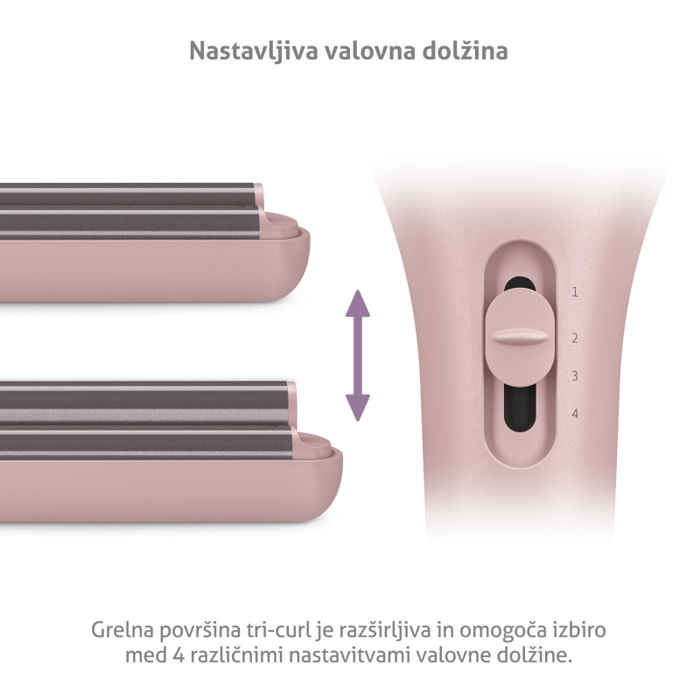 TrueLife HairWaver W6 će vas osvojiti svojim dizajnom, ali kada nakon korištenja vidite ljepotu svoje kose, postat će vam najbolji prijatelj. Trostruki dizajn, gdje se kosa jednostavno umetne između 3 grijaća dijela i pritisne zajedno, lako, brzo i istovremeno nježno stvara prirodne valove. Njihovu dužinu možete prilagoditi svojim željama zahvaljujući rastezljivoj grijaćoj površini, možete birati između 4 razine. To vam daje širok raspon varijacija frizura. Zahvaljujući tehnologiji TrueLife ConstantHea