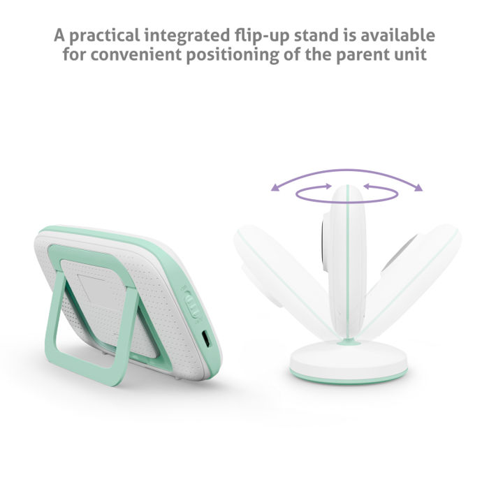 Bolje mogućnosti gledanja Roditeljska jedinica opremljena je novim 3,2" LCD zaslonom s IPS tehnologijom zahvaljujući kojoj pruža znatno bolju sliku od originalnog modela, što je posebno vidljivo po pitanju boja. Isto je i s kutom gledanja koji je sada znatno veći. I sve to do udaljenosti od 300 metara. Čim posivi, noćni vid se automatski uključuje, infracrvene diode brinu se da je slika uvijek savršena. Za detaljniji pregled, nova matična ploča nudi funkciju zumiranja, tj. zumiranje slike. Dječju kameru možete naginjati kako želite.
