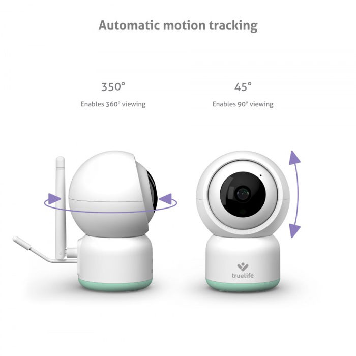 Sve možete vidjeti s bilo kojeg mjesta TrueLife NannyCam R3 Smart rotirajuća elektronička dadilja može pratiti kretanje i okretati se iza nje. U isto vrijeme, njegova širokokutna leća vidi u svim kutovima i automatski aktivira noćni vid u mraku. Zahvaljujući povezivanju s internetom, domet elektroničke babysitterice je neograničen, a u trenutku kada je zaslon vašeg telefona isključen, ona sigurno ne spava. Snima svaki pokret i zvuk te vam šalje obavijest na telefon. Također može prenijeti snimke na SD karticu u načinu rada 24/7.