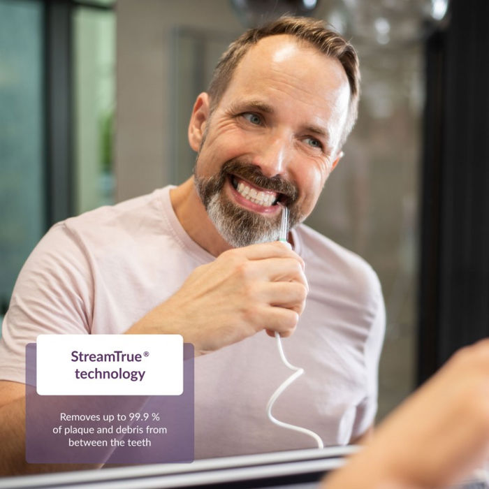 Prevencija karijesa i upale desni StreamTrue® tehnologija Mikromjehurići koji se sastoje od vode i zraka pod visokim pritiskom potiskuju u međuzubni prostor i tako učinkovito uklanjaju čak 99% naslaga i prljavštine na teško dostupnim mjestima.