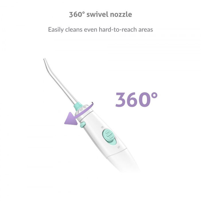 360° rotirajuća glava Glava mlaznice je rotirajuća oko svoje osi i tako lako dopire čak i do teško dostupnih mjesta u ustima.