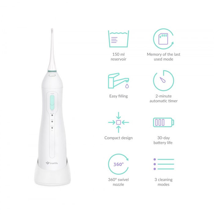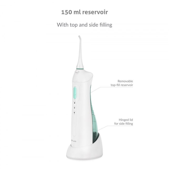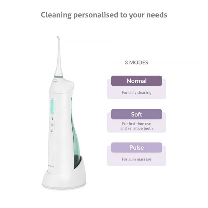Nosite ga posvuda sa sobom Sa zadovoljstvom stomatologu AquaFloss Compact ima nekoliko načina rada, tako da ga možete potpuno prilagoditi - na primjer postavljanjem razine pritiska. Osim obične vode, u spremnik možete uliti i vodicu za ispiranje usta za dodatnu dozu svježine i higijene. Zubni tuševi u kombinaciji s četkicom smanjuju rizik od karijesa. Time ćete se uštedjeti neugodnih posjeta stomatologu i neočekivanih troškova.