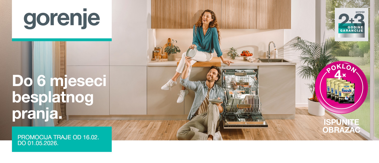 Uz kupnju Gorenje perilice posuđa, nakon prijave putem obrasca, na poklon stiže 4 paketa Finish kapsula za strojno pranje posuđa.