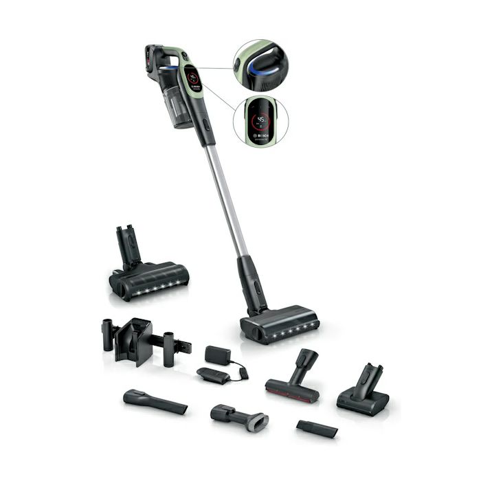 Dimenzije proizvoda: 1300x250x216 mm Izmjerena težina, spremna za rad: 3.3 kg 10 godina jamstvo na motor Razina performansi: 3 Automatski način Vrijeme rada (maks.): 60 min Broj zamjenjivih baterijskih paketa: 1 Vrsta baterijske ćelije: Li-Ion Vrijeme punjenja: 2 h Brzi punjač Voltaža: 18.0 V Razina buke: 80 dB(A) re 1pW Filtracijski sustav: bez vrećice Sadržaj, spremnik prašine: 0.4 l Uključeni dodatni pribor: 1 x Nastavak za proreze, 1 x Četka za namještaj, 1 x XXL nastavak za presvlake, 1 x Kabel za punjenje, 1 x Brzi punjač, 1 x Izmjenjiva baterija, 1 x Mini četka za snagu, 1 x Priključna stanica, 1 x Dugi fleksibilan nastavak za pukotine, 1 x Četka za tvrde podove i LED svjetlima, 1 x Šina za priključnu stanicu, 2 x Adapter za šinu