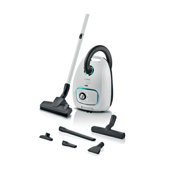 Kontinuirano visoka učinkovitost s tehnologijom Bosch Motor Technology napravljenom u Njemačkoj. Dva nastavka, ugrađena u aparat: nastavak za pukotine i nastavak za tapecirano pokućstvo. Vrećica AirFresh: učinkovito uklanjanje neugodnih mirisa za čist ispušni zrak - idealan za vlasnike kućnih ljubimaca. Power Control: optimalni rezultati na svim podovima s preciznom regulacijom snage i odličnim upravljanjem motorom. Sustav PowerProtect: za dugotrajnu usisnu snagu čak i kad je vrećica puna.