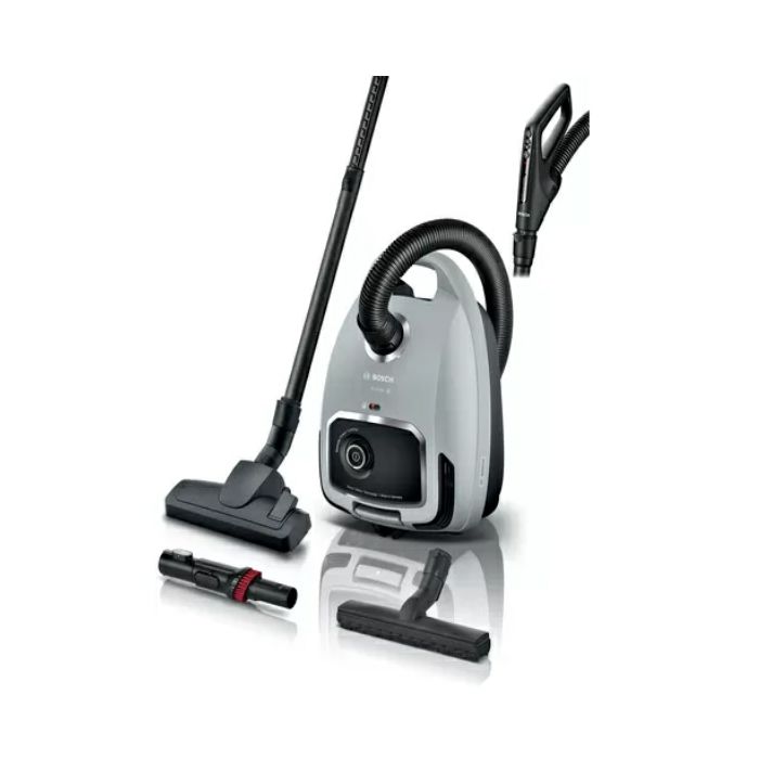 Bosch BGB6X330 Serie 6 Usisavač s vrećicom 10-godišnje jamstvo na motor PowerProtect System: visoka učinkovitost čišćenja , čak i kada je vrećica napunjena. PowerProtect vrećica za prašinu, osigurava visoku performansu kada se vrečica napuni. Buka: 75 dB dB(A) Periv HEPA higijenski filter: za alergičare Tip filter vrećica: TYP G ALL Remote Power Control: jednostavno upravljanje snagom. Višenamjenska četka: nježno čišćenje pokućstva i teško dostupnih područja integriranom četkom Četka za tvrdi pod sa mekim četkama.Pogodno za nježno čiščenje podova poput parketa. Preklopna četka Nagrađivani vrhunski dizajn: pomodan s mat teksturom, LED svjetlom i šarenim premazima. Radijus djelovanja: 12 m Teleskopska cijev Zapremina filter vrećice: XL Automatsko namatanje kabla 4 kotačića Elektronska regulacija snage usisavanja okretnim regulatorom Prikaz popunjenosti filter vrećice Dodatak za postavljanje u mirovanju i spremanje na malom prostoru Težina aparata (bez pribora za usisavanje): 4.3 kg Država porijekla: Njemačka