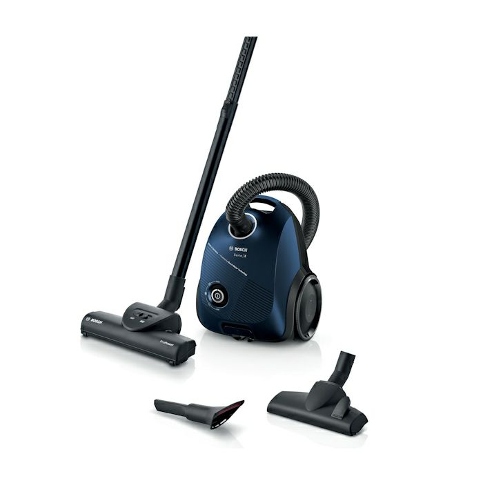 Bosch BGBS2BU1T Usisavač s vrećicom 10-godišnje jamstvo na motor Novi inovativni HiSpin Motor sa aerodinamičnim noževima i savršenim kalibrima protoka zraka za visoke prašine pick-up sa niskom potrošnjom energije Visoka učinkovitost s četkom Turbo Brush. Osmišljena za dubinsko čišćenje svih podova, pogotovo tepiha. Higijenski filter Tip filter vrećica: TYP G Preklopna četka na kotačićima Teleskopska cijev Ergonomska ručka Zapremina filter vrećice: L Dodatak za postavljanje u mirovanju i spremanje na malom prostoru BigCapacity: velik kapacitet vrećice za prašinu unatoč kompaktnoj veličini - smanjuje učestalost mijenjanja vrećice i troškove Automatsko namatanje kabla Elektronska regulacija snage usisavanja okretnim regulatorom 2 velika fiksirana kotača, 1 fleksibilan Težina aparata (bez pribora za usisavanje): 3 kg Buka: 80 dB dB(A) Država porijekla: Njemačka