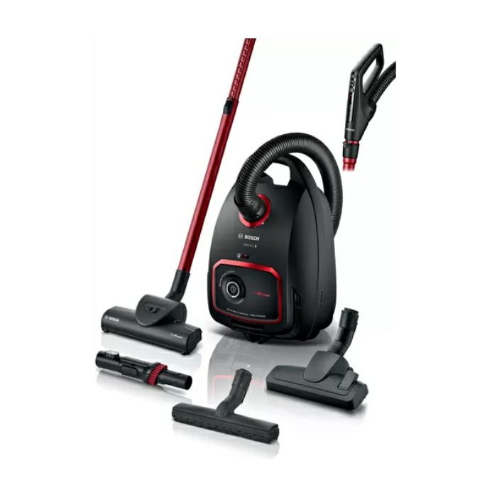 Bosch BGL6POW1 Serie 6 Usisavač s vrećicom 10-godišnje jamstvo na motor Visoka učinkovitost s četkom Turbo Brush. Osmišljena za dubinsko čišćenje svih podova, pogotovo tepiha. PowerProtect System: visoka učinkovitost čišćenja , čak i kada je vrećica napunjena. PowerProtect vrećica za prašinu, osigurava visoku performansu kada se vrečica napuni. Buka: 76 dB dB(A) Periv HEPA higijenski filter: za alergičare Tip filter vrećica: TYP G ALL Remote Power Control: jednostavno upravljanje snagom. Višenamjenska četka: nježno čišćenje pokućstva i teško dostupnih područja integriranom četkom Četka za tvrdi pod sa mekim četkama.Pogodno za nježno čiščenje podova poput parketa. Preklopna četka Nagrađivani vrhunski dizajn: pomodan s mat teksturom, LED svjetlom i šarenim premazima. Radijus djelovanja: 12 m Teleskopska cijev Zapremina filter vrećice: XL Automatsko namatanje kabla 4 kotačića Elektronska regulacija snage usisavanja okretnim regulatorom Prikaz popunjenosti filter vrećice Dodatak za postavljanje u mirovanju i spremanje na malom prostoru Težina aparata (bez pribora za usisavanje): 4.3 kg Država porijekla: Njemačka