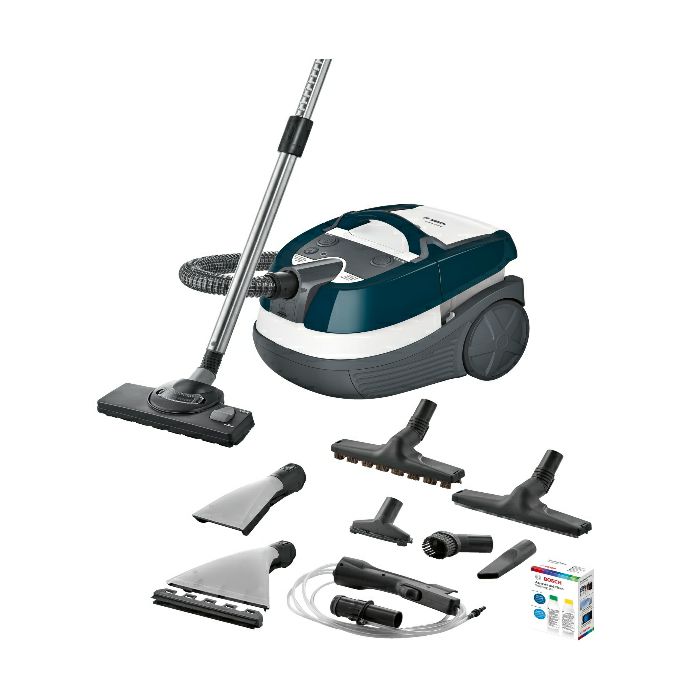 Bosch 3u1 mokro-suhi usisavač - perite tepihe, pokupite tekućine, usisavajte podove Higijenski filtar za čist ispušni zrak Preklopna četka na kotačićima Četka za parket izrađena od prirodnih čekinja za nježno čišćenje tvrdih podova Teleskopska cijev Fleksibilna i izdržljiva cijev, pojačana pletenom svilenom niti Automatsko namatanje kabla Ekstra veliki mekani kotačići za zaštitu tvrdih podova Dodatak za postavljanje u mirovanju i spremanje na malom prostoru Filtar za zaštitu motora Jednostavno rukovanje za uklanjanje i pražnjenje spremnika za prašinu Radijus djelovanja: 9 m Veliki kapacitet spremnika: 5 l Zapremina posude za prašinu: XL Dodatci: - set za pranje - mlaznica za prikupljanje vode - mala četka, mala mlaznica i alat za pukotine Velika mlaznica za pranje - za pranje tepiha i usisavanje tekućina Mala mlaznica za pranje - za pranje tapeciranog namještaja Maksimalna snaga (W): 1.700 W
