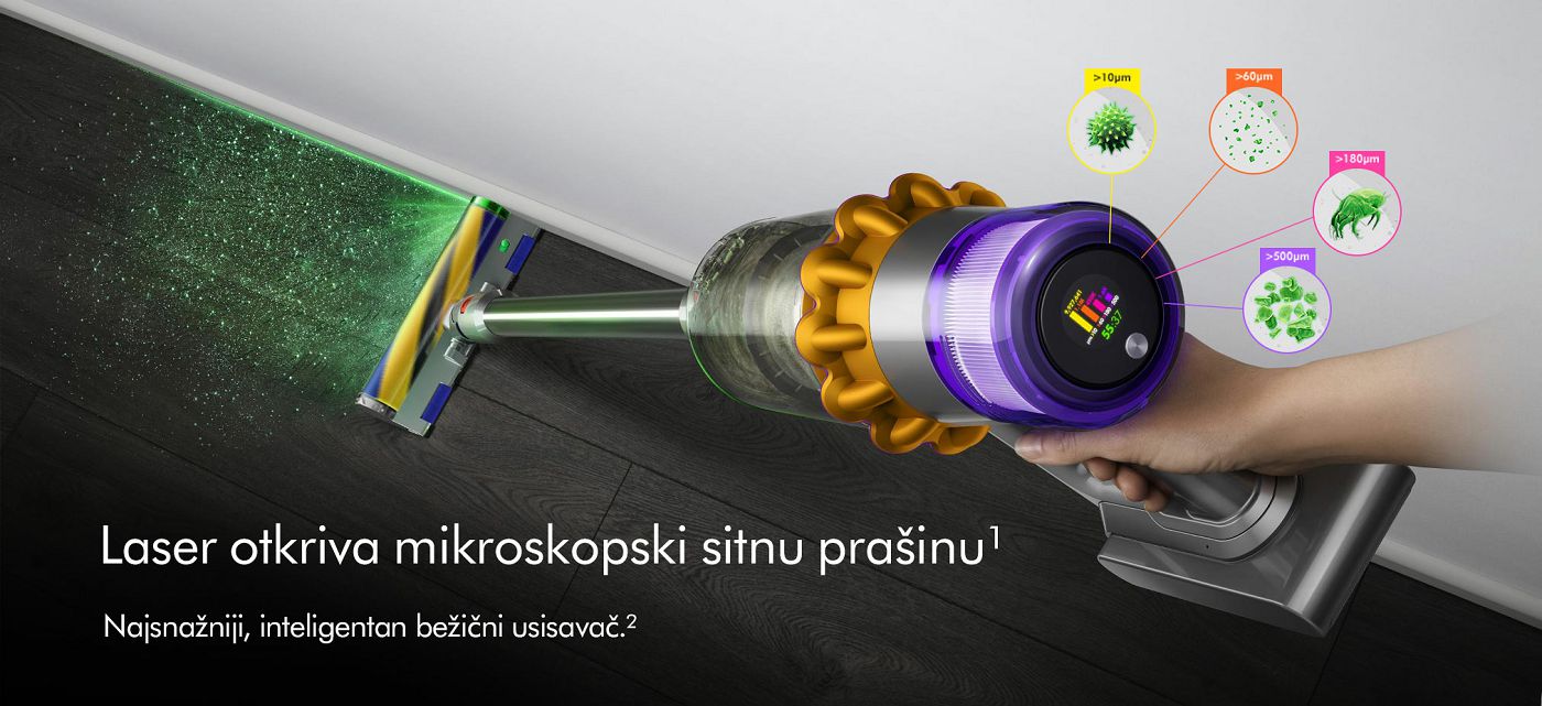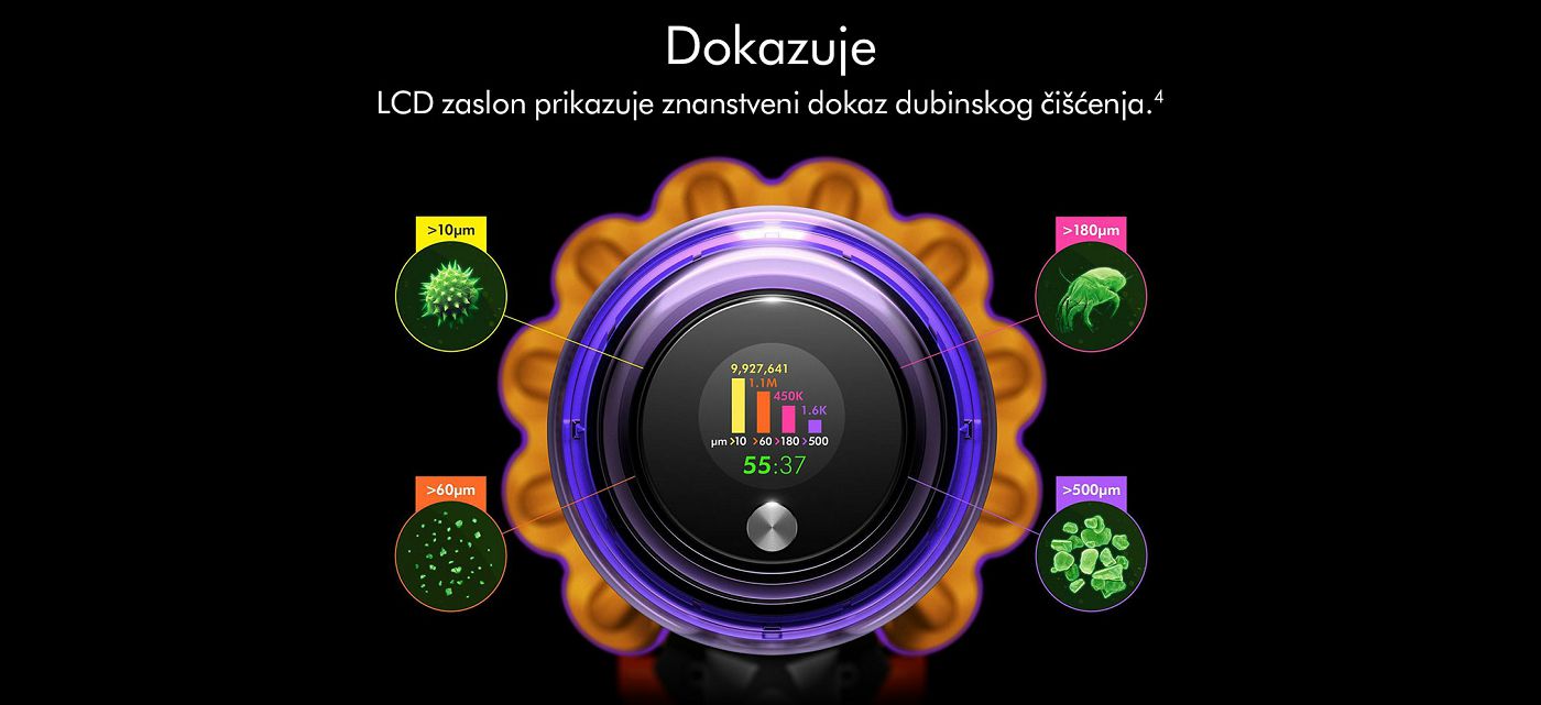 Dyson otkriva nevidljivu prašinu. Broji i mjeri veličinu čestica prašine. Automatski prilagođava usisnu snagu. Znanstveni dokaz dubinskog čišćenja.