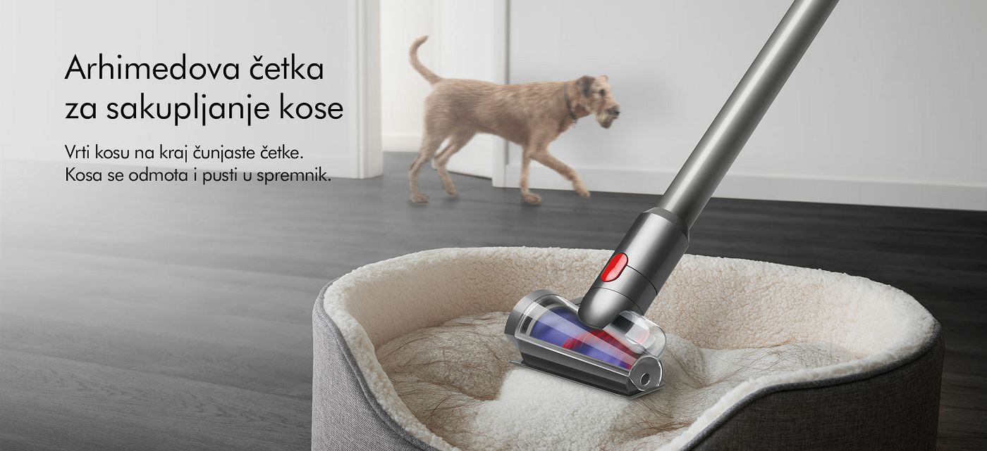 Inteligentno reagira automatski povećavajući snagu usisavanja kada se identificira veća količina prašine. Digital Motorbar™ s češljem za raspetljavanje automatski uklanja umotanu kosu s četke.