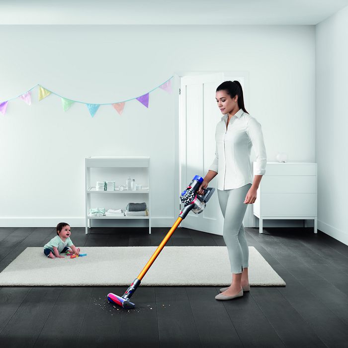HEPA Filtracija Osnažen Dyson digitalnim motorom V8 Radial™ cikloni - 15 ciklona, raspoređeni na dvije razine, paralelno rade kako bi povećali protok zraka i pokupili finu prašinu Osnažen je Nickel-Cobalt-Aluminijskom baterijom koja omogućava do 40 minuta snažnog usisavanja (do 25 minuta s motoriziranom četkom) Max način rada - omogućava do 6 minuta jače usisne snage za teže zadatke. Pretvara se u ručni usisavač. Higijensko izbacivanje prljavštine jednim pritiskom. Trajni perivi filter. Direct-drive četka. Mekana rotirajuća četka. Težina: 2,6 kg Usisna moć: 115AW Kapacitet spremnika: 0,54 l Dimenzije: 210 x 1243 x 250 mm Nastavci u kutiji: kombinirani nastavak, nastavak za kuteve sa svjetlom, mini motorizirana četka, mekana četka za prašinu.