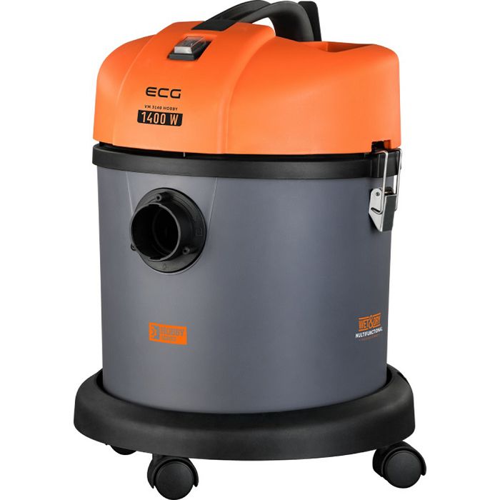 Usisavač serije HOBBY Idealan za rad u kući i garaži Narančasto-siva kombinacija boja Mogućnost mokrog i suhog usisavanja Filtar za mokro usisavanje HEPA filtar za suho usisavanje Četka za podove/tepihe Mokra/suha četkica Suženi nastavak / četka za prašinu Kompaktna četka TURBO Nastavak za čišćenje s izmjenjivim donjim dijelom za mokro/suho čišćenje Suženi nastavak s četkom za prašinu 4 dvostruka kotača za jednostavno prevoženje Najveća snaga: 1400 W