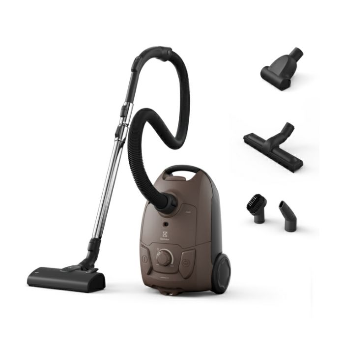Cijev u 2 dijela: odvojiva cijev omogućiti će lakše pospremanje usisivača. Četka za tvrde podove: nastavak za pod posebno je razvijen za visokoučinkovito čišćenje svih vrsta tvrdih podova poput pločica, drva, linoleuma, mramora itd. Usisivač sa S-Bag vrećicamaa S-bag protiv neugodnih mirisa: posebna vrećica za prašinu protiv neugodnih mirisa apsorbirat će sve neugodne mirise iz usisivača, a u prostoriju vraćati svjež i čist zrak. Mali pokazivač na usisavaču koji upozorava kada je vrijeme da zamijenite vrećicu. Velika ergonomska ručka za uspravno nošenje usisivača. Mekani kotači: smanjuju buku i štite podove. Stražnji utori za uspravno parkiranje cijevi, donji utori za lako spremanje usisivača Usisna snaga regulira se ručno koristeći kontrolu regulacije zraka na usisavaču. Skupljanje iz uskih prostora (skupljanje prašine s tvrdih podova s nastavkom za uske prostore): 109 Skupljanje prašine iz tepiha (%): 87 Razina buke cijelog usisivača, dB(A): 78 Radijus rada, m: 8,5 Veličina vrećice, l: 3 HEPA filter Max protok zraka usisivača: 31 Indikator napunjenosti vrećice: mehanički Učinkovitost filtracije, kompletan čistač (%): 99.99 Funkcija parkiranja: vodoravno i okomito Usisna snaga, W: 209 Nastavak - za sve podove: AllFloor with interlock Nastavak - za tvrde podove: Hard Floor nozzle Jačina samo usisavača, W: 3.64 Nastavak - turbo četka za pod: Mini turbo Integrirani dodaci: 2u1 pukotine na tkanini za tapeciranje, četka za prašinu Dimenzije VxŠxD, mm: 228x416x287 Duljina kabela, m: 6 Neto težina, kg: 5.42 Boja: Orah smeđa Prosječna godišnja potrošnja električne energije (kWh) : 28.2 Nominalna snaga, W: 650 Maximalna snaga, W: 750