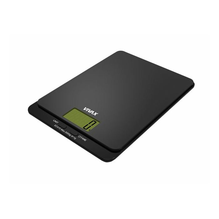 Vivax kuhinjska vaga KS-502B je praktičan mali dodatak koji znatno olakšava kuhanje i spremanje omiljenih slastica. Svojom elegantnom crnom bojom uklopiti će se u baš svaku kuhinju. Ova vaga ima precizan digitalni mjerač koji mjeri najviše do 5 kg. Velika prednost je i ugrađeni sustav za automatsko isključivanje, tako da se možete bez brige prepustiti kulinarskim avanturama. Osnovne karakteristike: Max. mjerena masa [kg]: 5 Min. mjerena masa [g]: 1 TARE funkcija: Da
