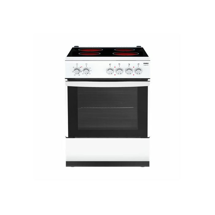 VIVAX HOME samostojeći štednjak FC-04602VCF WH donosi pouzdanu funkcionalnost u elegantnom belom kućištu. Opremljen je s četiri staklo keramičke grjeaće ploče (2×1200 W i 2×1800 W) i rernom zapremine 64 L s gornjim i donjim grejačem i ventilatorom. Nudi 4 načina pečenja, reljefne vođice i maksimalnu temperaturu do 250 °C. Zahvaljujući staklenoj upravljačkoj ploči i energetskoj učinkovitosti razreda A, idealan je za svako domaćinstvo koje traži klasične funkcije uz moderan dizajn. Osnovne karakteristike: Energetski razred: A Volumen pećnice: 64 Ploča za kuhanje: 4 struje Materijal gornje ploče: Inox Boja i materijal upravljačke p: Inox Materijal ladice: Inox Materijal bočnih stranica: Srebrni metal