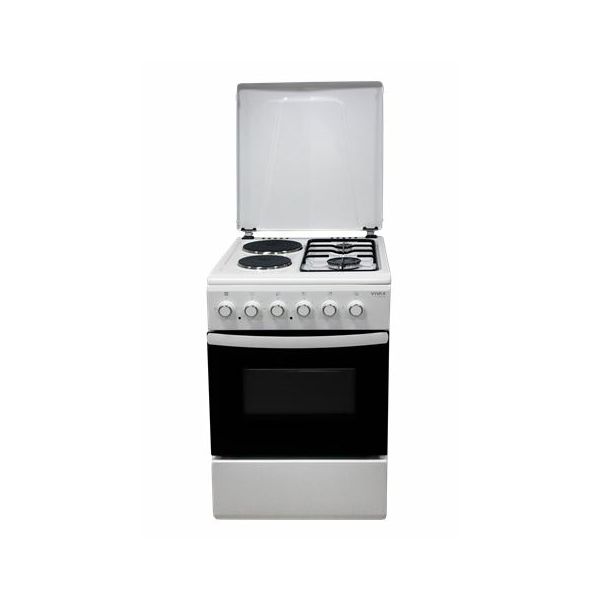 VIVAX samostojeći štednjak FC-22502 WH idealan je odabir za vašu kuhinju jer osvaja modernim izgledom i jednostavnim korištenjem. Jednostavna pećnica sa tri programa pećenja pruža vrhunske uvjete za brzo i profesionalno pečenje. Unatoč širini od 50 cm pećnica je zapremine 52 L i najviše energetske klase A daje dovoljno prostora za pečenje. Bijela boja je siguran odabir koji se uklapa u svaku kuhinju. Gornja ploča napravljena su od visoko otpornog emajliranog metala s emajliranim držačima posuda i uključuje metalni poklopac. FC-22502 WH je samostojeći plinsko-električni štednjak s dvije strujne grijače ploče i dva plinska plamenika. Plinski plamenici opremljeni su zaštitnim sklopom protiv neželjenog istjecanja plina. Standardna oprema pećnice je rešetkasta polica i pltka posuda. Osnovne karakteristike: Energetski razred: A Volumen pećnice: 52 Ploča za kuhanje: Kombinirana 2+2 Materijal gornje ploče: Bijeli emajl Boja i materijal upravljačke p: Bijeli metal Materijal ladice: Bijeli metal Materijal bočnih stranica: Bijeli metal