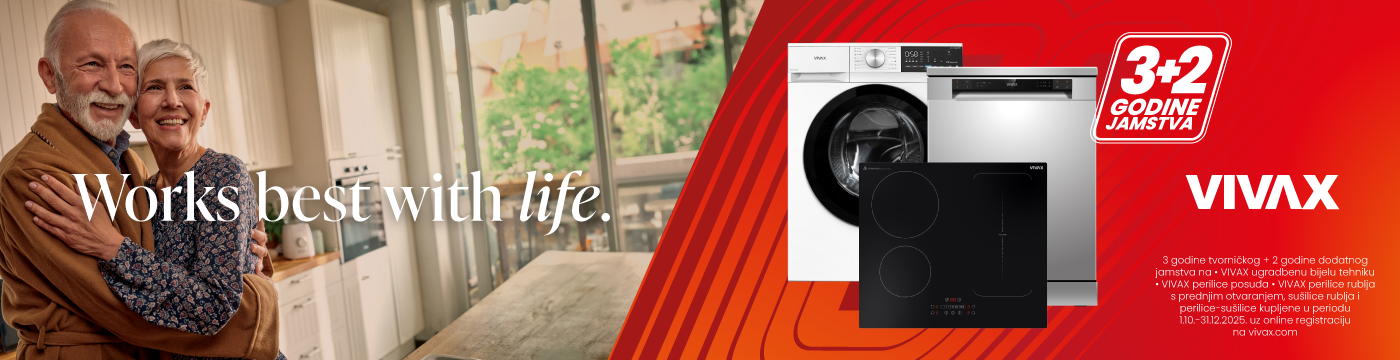 3+2 godine jamstva na sve VIVAX uređaje ugradbene bijele tehnike, perilice rublja s prednjim punjenjem, sušilice rublja, perilice-sušilice rublja i samostojeće perilice posuđa kupljene u razdoblju 1.10. – 31.12.2025.