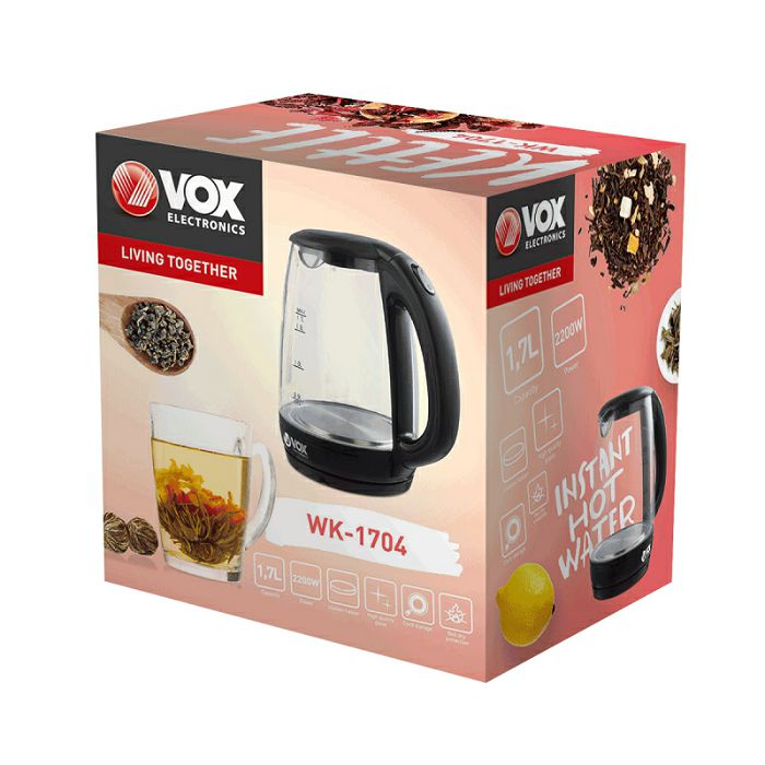 S ponosom predstavljamo VOX kuhalo za vodu. S kapacitetom od 1,7 litara, ovaj moćni uređaj dizajniran je za iznimno učinkovit rad, pružajući svježe prokuhanu vodu u trenu. Svojim elegantnim staklenim kućištem ovaj bojler uljepšat će svaku kuhinju.