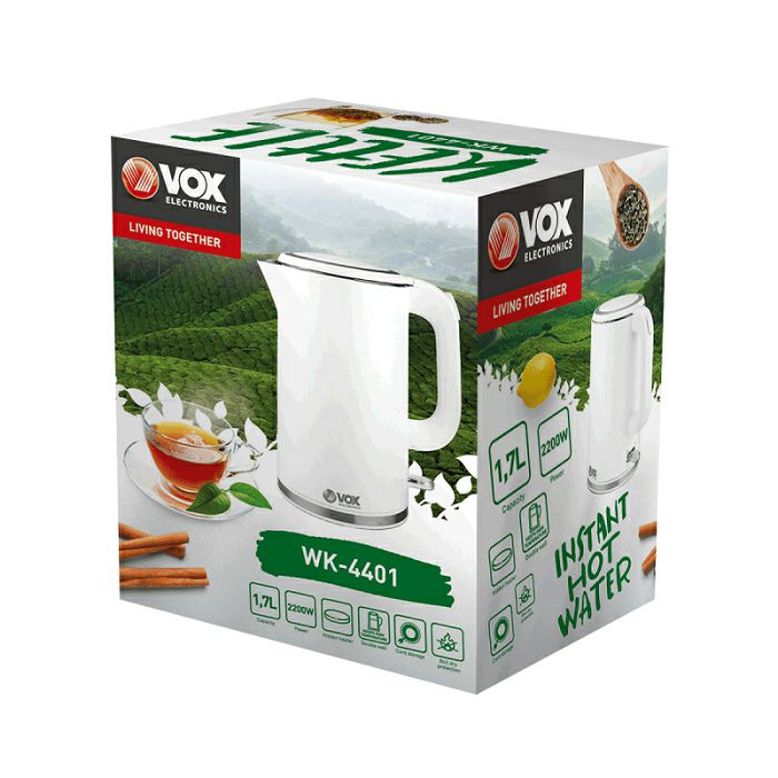 Vox-Electronics bojler WK-4401 snage 2200 W osigurava brzo i jednostavno zagrijavanje vode. Zapremnine je 1,7 litara.
