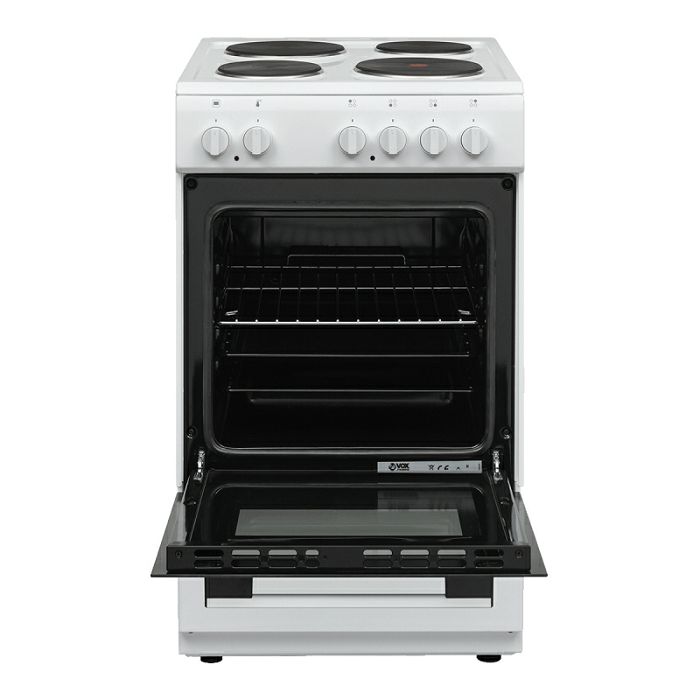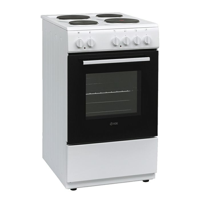 TEHNIČKE SPECIFIKACIJE: - Kategorija: električni štednjaci - Energetski razred: A - Broj grijaćih zona: 4 * Ploča 1: električna ploča za kuhanje 145 mm, 1000 W * Ploča 2: električna ploča za kuhanje 145 mm, 1000 W * Ploča 3: električna ploča za kuhanje 180 mm, 1500 W * Ploča 4: električna ploča za kuhanje 180 mm, 2000 W - 2 ploče za brzo kuhanje - Vrsta pećnice: električna - Ostalo: besplatan strujni kabel, dva pladnja, kromirana rešetka, jednostavno čišćenje, ladica za pohranu - Kapacitet pećnice: 55 l - Broj načina pečenja: 3 - Gornji grijač: 1000 W - Donji grijač: 1000 W - Indeks energetske učinkovitosti - standard: 93,5 - Potrošnja električne energije - standard: 0,73 kWh/ciklus - Termostat: da - Dimenzije uređaja (VxŠxD): 850 x 500 x 600 mm - Dimenzije zapakiranog uređaja (VxŠxD): 919 x 545 x 684 mm - Neto težina: 36,58 kg - Bruto težina: 37,95 kg - Boja: bijela