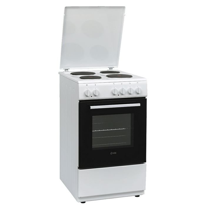 Vox Electronics električni štednjak EHT 5020 WG predstavlja odličan omjer dobre cijene i dobrih tehničkih karakteristika. Spada u energetski razred A. Štednjak ima 4 električne ploče za kuhanje. 2 ploče za kuhanje imaju promjer 180 mm i 2 145 mm. Ispod je postavljena ventilatorska pećnica kapaciteta 50 litara. S dva pleha moći ćete istovremeno peći velike količine hrane. Peć je opremljena indikatorom rada električne ploče i indikatorom rada termostata. Glatka emajlirana i staklena površina omogućuje jednostavno čišćenje.