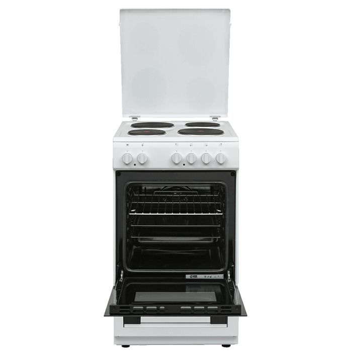 TEHNIČKE SPECIFIKACIJE: - Kategorija: električni štednjaci - Energetski razred: A - Broj grijaćih zona: 4 * Ploča 1: električna ploča za kuhanje 145 mm, 1000 W * Ploča 2: električna ploča za kuhanje 145 mm, 1000 W * Ploča 3: električna ploča za kuhanje 180 mm, 1500 W * Ploča 4: električna ploča za kuhanje 180 mm, 2000 W - 2 ploče za brzo kuhanje - Vrsta pećnice: električna - Ostalo: besplatan strujni kabel, dva pladnja, kromirana rešetka, jednostavno čišćenje, ladica za pohranu - Zapremina pećnice: 50 l - Broj načina pečenja: 8 - Gornji grijač: 1000 W - Donji grijač: 1000 W - Električni roštilj: 1600 W - Električni dupli gril grijač: 2600 W - Indeks energetske učinkovitosti - standard: 103,9 - Indeks energetske učinkovitosti - s ventilatorom: 93,4 - Potrošnja električne energije - standard: 0,79 kWh/ciklus - Potrošnja električne energije - s ventilatorom: 0,71 - Pećnica s ventilatorom - Dupla funkcija roštilja s ventilatorom: da - Statička funkcija pečenja: da - Brža funkcija roštilja: da - Funkcija odmrzavanja: da - Osvijetljena pećnica: da - Tajmer: da (mehanički) - Termostat: da - Dimenzije uređaja (VxŠxD): 850 x 500 x 600 mm - Dimenzije zapakiranog uređaja (VxŠxD): 922 x 545 x 684 mm - Neto težina: 42,75 kg - Bruto težina: 46,02 kg - Boja: bijela