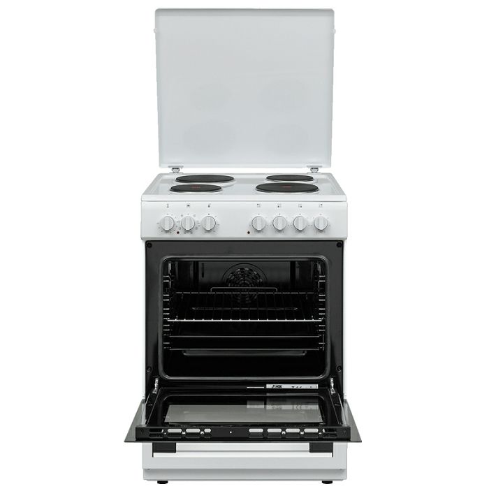 TEHNIČKE SPECIFIKACIJE: - Kategorija: električni štednjaci - Energetski razred: A - Broj grijaćih zona: 4 * Ploča 1: električna ploča za kuhanje 145 mm, 1000 W * Ploča 2: električna ploča za kuhanje 145 mm, 1000 W * Ploča 3: električna ploča za kuhanje 180 mm, 1500 W * Ploča 4: električna ploča za kuhanje 180 mm, 2000 W - 2 ploče za brzo kuhanje - Vrsta pećnice: električna - Ostalo: besplatan strujni kabel, dva pladnja, kromirana rešetka, jednostavno čišćenje, ladica za pohranu - Zapremina pećnice: 69 l - Broj načina pečenja: 8 - Gornji grijač: 1200 W - Donji grijač: 1100 W - Električni roštilj: 1400 W - Električni dupli gril grijač: 2600 W - Indeks energetske učinkovitosti - standard: 103,6 - Indeks energetske učinkovitosti - s ventilatorom: 95,3 - Potrošnja električne energije - standard: 0,87 kWh/ciklus - Potrošnja električne energije - s ventilatorom: 0,8 - Pećnica s ventilatorom - Dupla funkcija roštilja s ventilatorom: da - Statička funkcija pečenja: da - Brža funkcija roštilja: da - Funkcija odmrzavanja: da - Osvijetljena pećnica: da - Tajmer: da (mehanički) - Termostat: da - Dimenzije uređaja (VxŠxD): 850 x 600 x 600 mm - Dimenzije zapakiranog uređaja (VxŠxD): 922 x 645 x 684 mm - Neto težina: 42,81 kg - Bruto težina: 44,02 kg - Boja: bijela